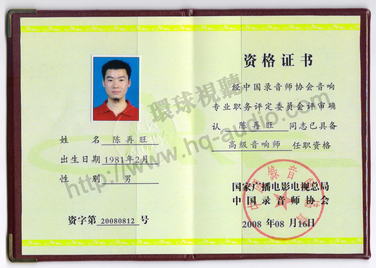 音响师证